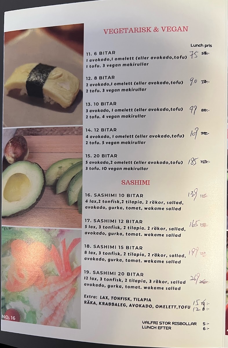 The menu offers a variety of sushi combinations, such as: